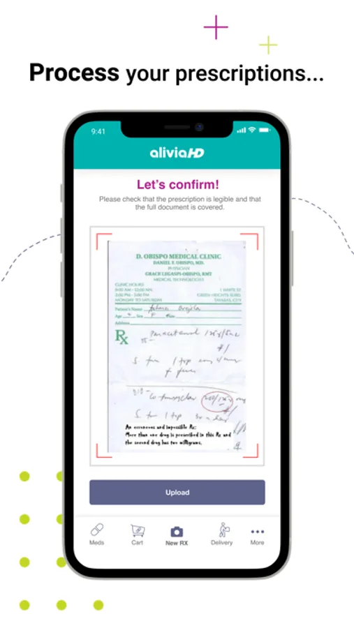 Our mobile pharmacy offers accessibility when managing your health and the one of those you care for. Through Alivia Home Delivery you will be able to upload your prescriptions, schedule delivery dates, and follow your order until it is delivered, all of this from the comfort of your home. Plus, if you are not able to send the prescription, your doctor can do it for you.