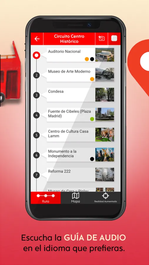 In the Explore section, you can now choose the circuit where you are going to see the next places of interest and listen to our audio-tour that will inform you about where you are.