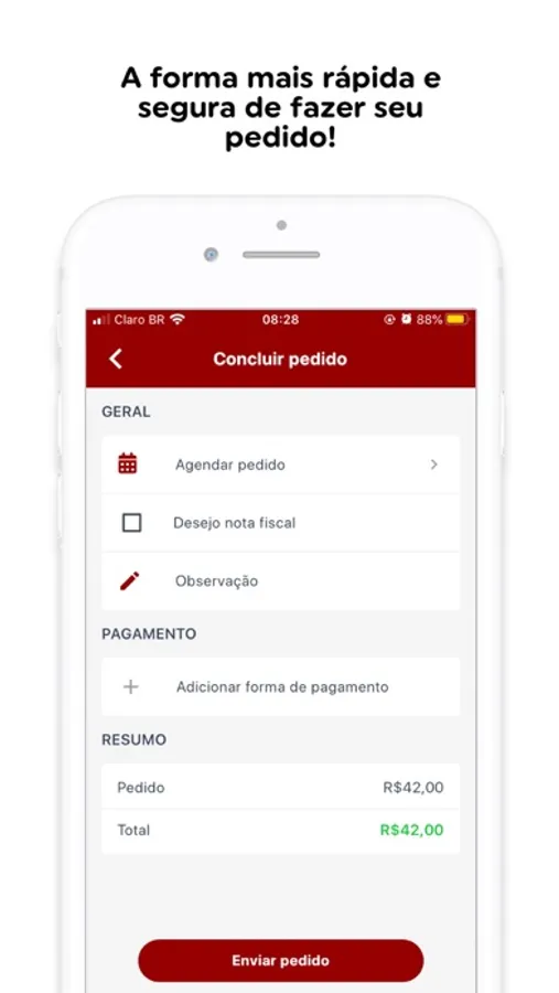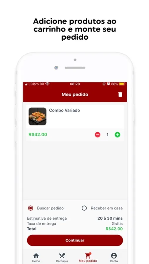 No app, você encontra de forma rápida o cardápio completo e ainda pode utilizar a ferramenta de busca para localizar diretamente os produtos que você deseja.