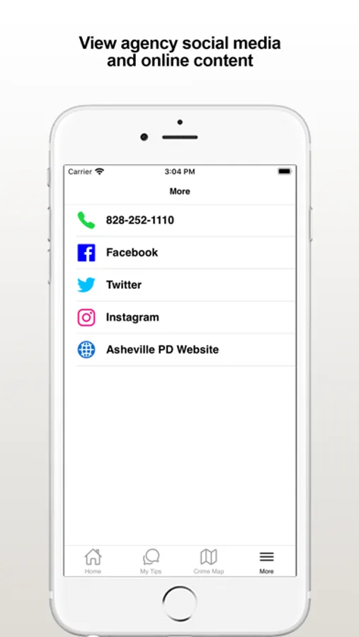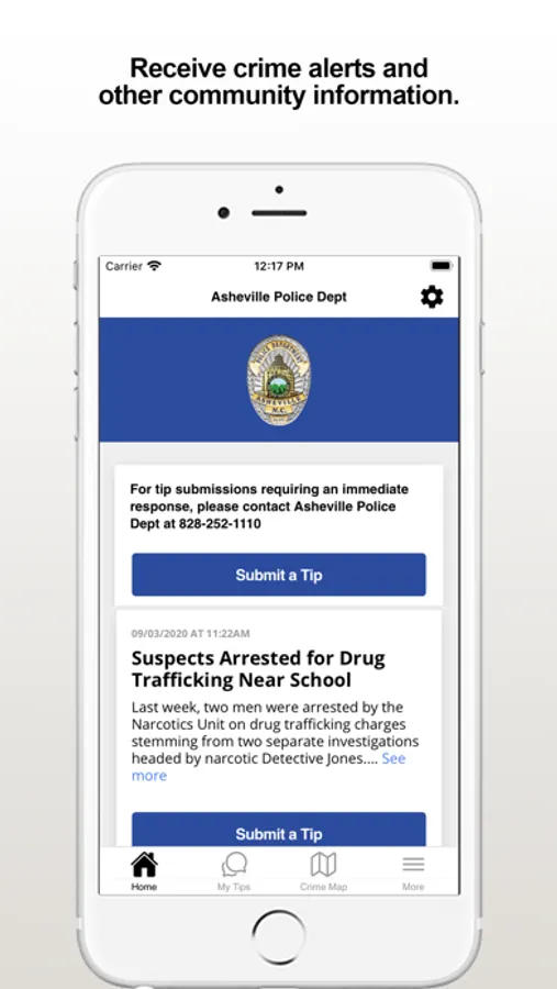 The Asheville PD app provides citizens the ability to submit anonymous tips to the Asheville, NC Police Department. The app also displays agency crime alerts, online crime map, and other organization web and social media content.