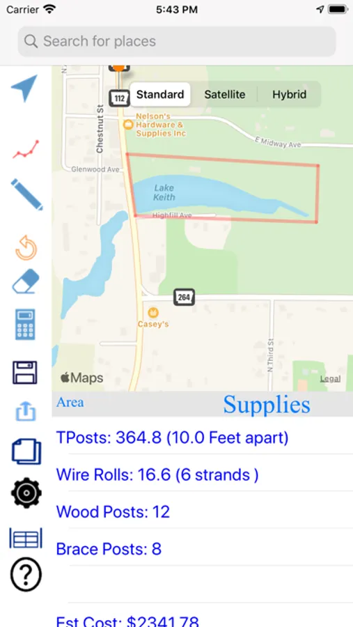 Can also be used to find and measure areas on a map for other projects, such as digging ponds, searching for properties, other building projects, etc.