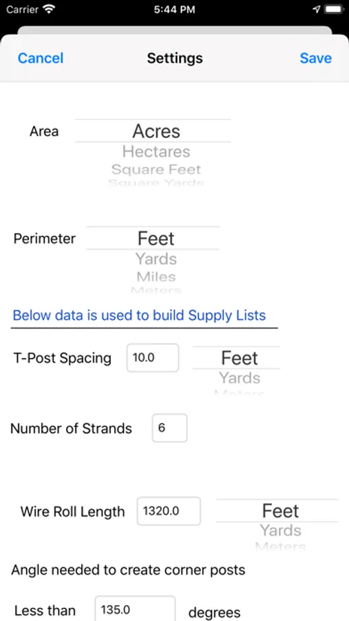 ⁃ Set your own preferences for fence construction and measurement units