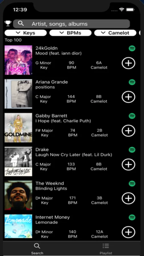 - Filter by key, beats per minute (BPM), Camelot, and mode.
