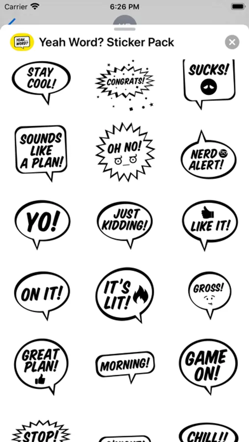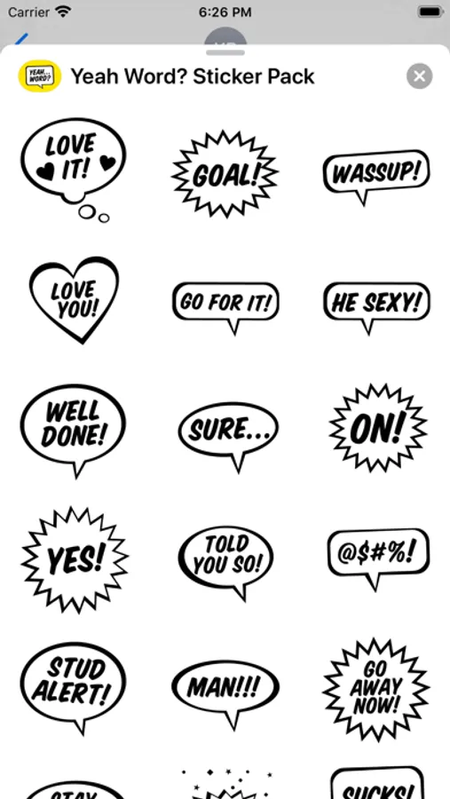 Use the Yeah Word? stickers to add a little extra to your iMessage conversations. Put them on photos for extra hilarity. Enjoy!