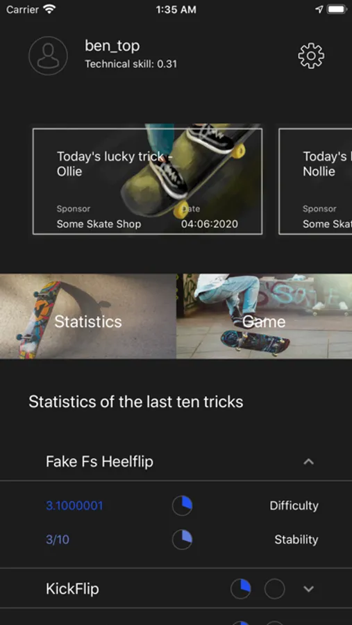 Что если взять классический спорт и применить принципы киберспорта? Сделать Мобов которые будут тренировать тебя, организовать турниры, и мотивировать игроков челенджами? Мы делаем первый шаг в будущие спорта и представляем вам приложение которое будет тренировать вас, улучшая качество ваших трюков на скейтборде. Подробная статистика каждого вашего трюка. Режим тренировки для улучшения скила и клевые челенджы для вашего бешеного прогресса!