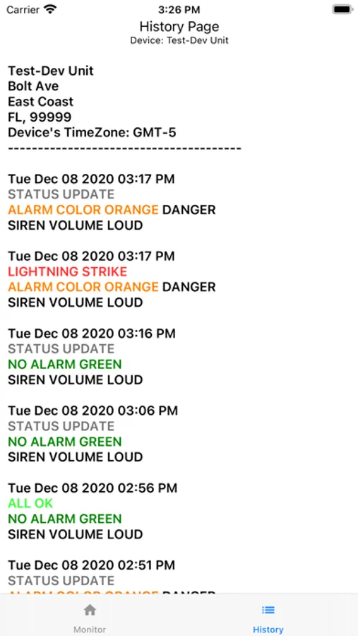 The Non-Connected units provide the same immediate on-site bright lights and loud (manually adjustable) siren lightning alerts to people in the area, but can not be monitored or controlled by this application.