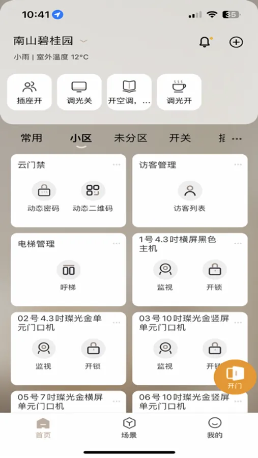 智慧社区: 云对讲(呼叫监视视频对讲), 云门禁(远程/蓝牙/二维码/动态码/访客人脸开锁), 云安防(报警信息实时推送), 云呼梯(一键呼梯) , 云资讯(物业信息查看)等功能.