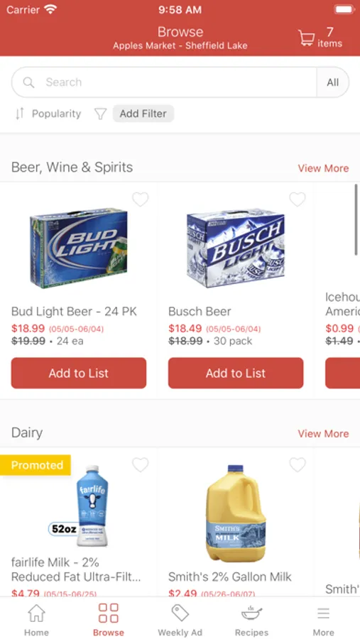 Build a shopping list to use in-store or let us do the shopping and you can pick it up curbside. You can search for products by brand, type, or by simply scanning the barcode of products you may be running low on at home. Apples Market is your locally owned neighborhood supermarket.