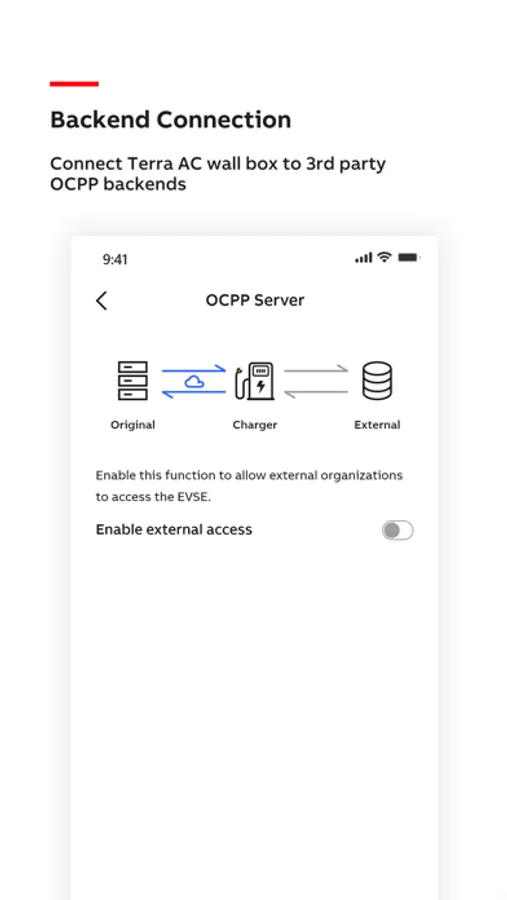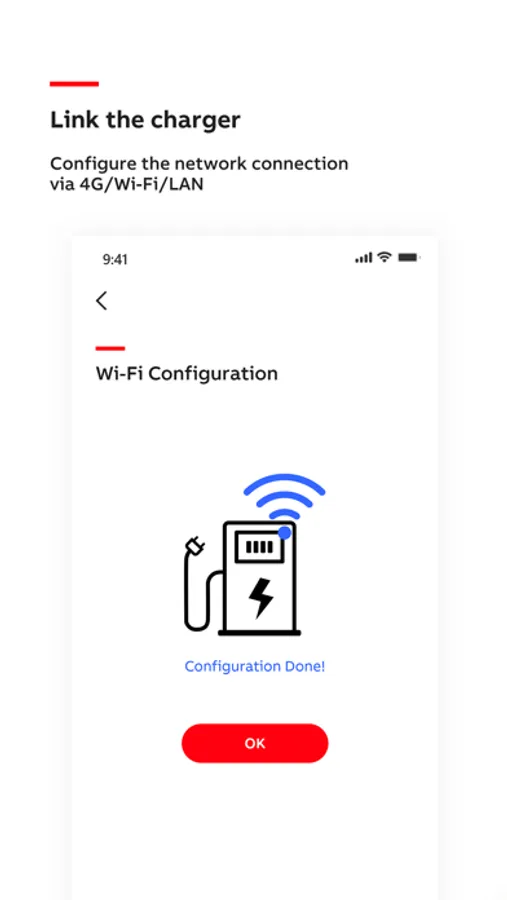 The app is exclusively designed for ABB Terra AC wall box. It provides the wall box with an extended set of digital features and is required to safely configure the charger.