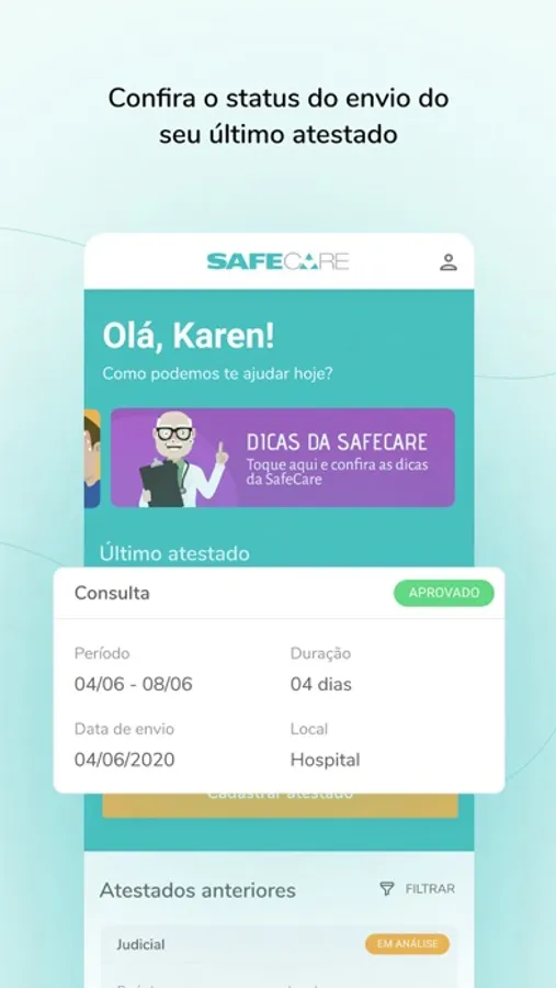 Com o APP da Safe Care Saúde, você envia de forma simples o seu atestado para o RH da sua empresa.