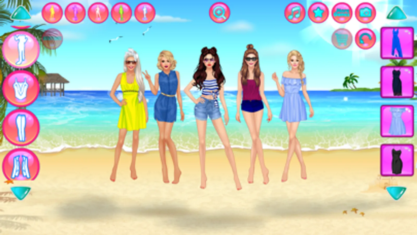 Press the "Camera" button when you've finished designing outfits, to grab a screenshot. Share with your friends on social networks to show off your talents as an outfit designer. All our makeover simulators are free, with no in-app purchases or locks. We've got many makeovers with glamour supermodels, celebrities, actresses and stars. Our games let you dream of being a famous supermodel of the podium, rising to the top charts of trendy fashion magazines. In each game, there are dozes of dresses, hairstyles, tops, skirts, accessories, shoes, jewelry, adorable pets, and much more. Design a unique look, pick a fancy hairstyle and put together an excellent combination of fitting clothing.