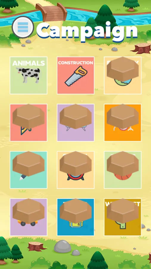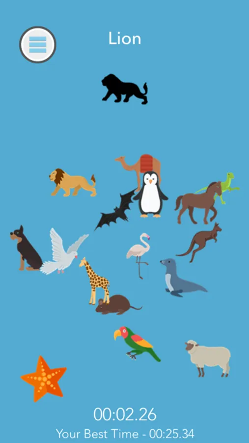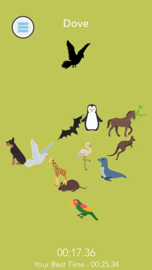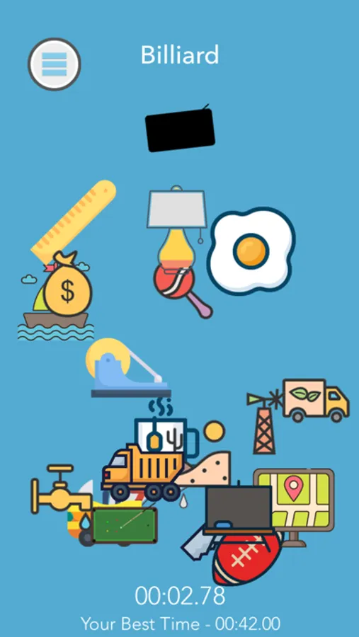 Multiple items are randomly added into the view and you have to find the missing object shown on the top and match it.