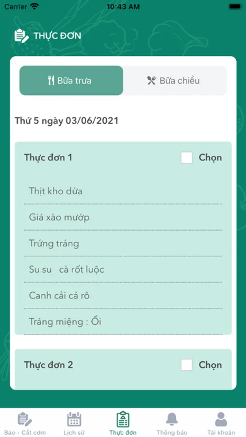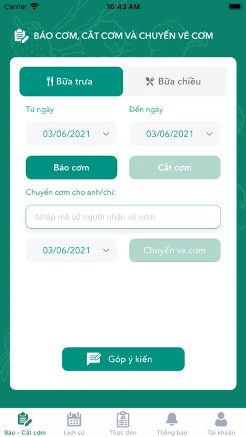 Ứng dụng báo cơm, cắt cơm và chuyển xuất