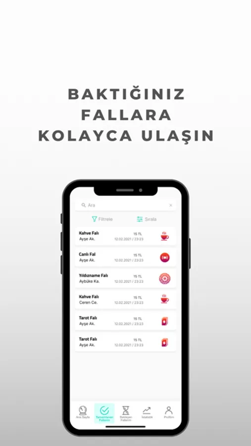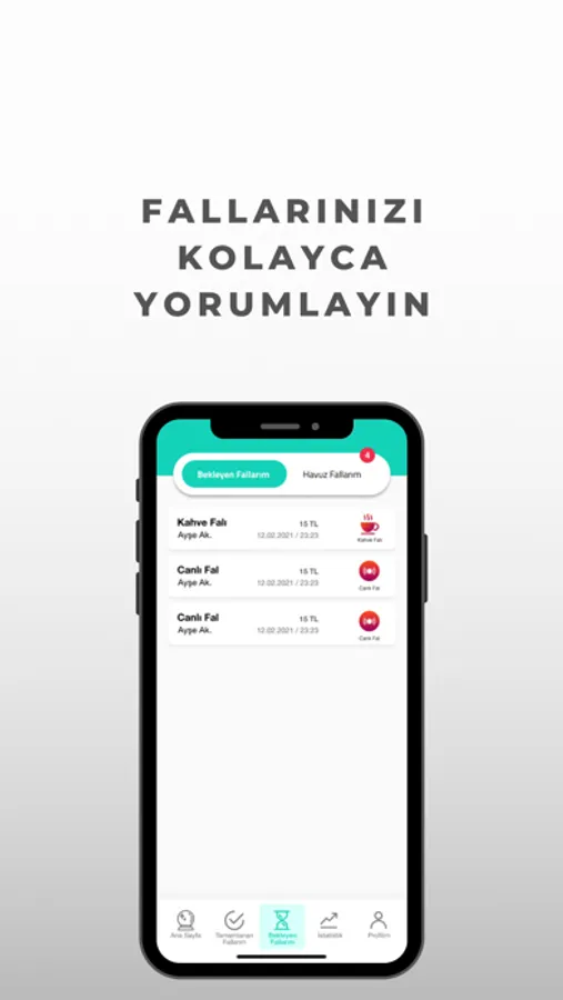 Uygulama üzerinden fallarınıza yazılı, sesli veya telefon görüşmesi olarak bakabilir, gelen fal talepleri için anlık bildirimleri alabilir ve kazançlarınızı güncel olarak takip edebilirsiniz.