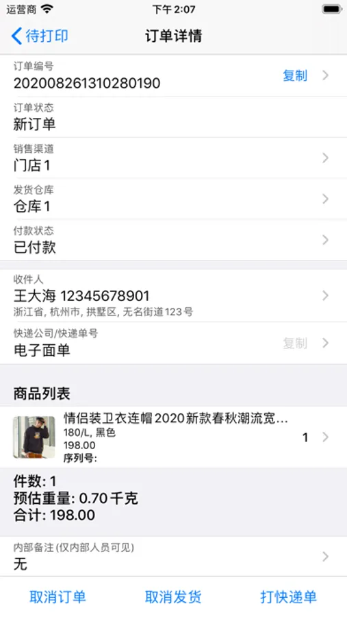 条码扫描:发货时候,可以同时扫描产品条形码或者追踪码,用来做商品溯源。支持各种条形码和二维码。