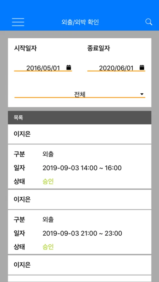 - 자녀의 외출/외박 신청에 대한 학부모 승인