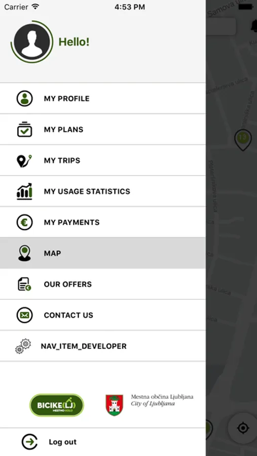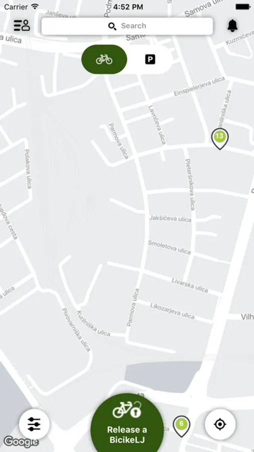 Ride a bike has never been so simple Open the app and activate the geoloc service to find the nearest station with avalaible bikes. When close to the station, press «Release a BicikeLJ» and pick yours!