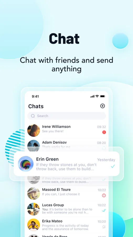 • More ways to chat: Use text, photos, voice, video, location sharing, etc. to send messages to friends.