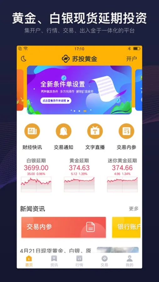 线上开户、一键下单、预警设置、实时出入金、横屏看图、划线分析,多种实用功能充分满足交易需求。