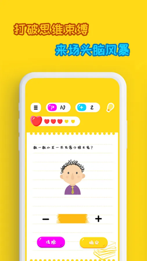 燃烧脑细胞,这是史上最烧脑的游戏,欢迎来挑战 以过关的形式展示你的脑力,打开脑洞,快来试试吧! 差点忘了!实在过不去你要硬撑哦,可以看看提示的。