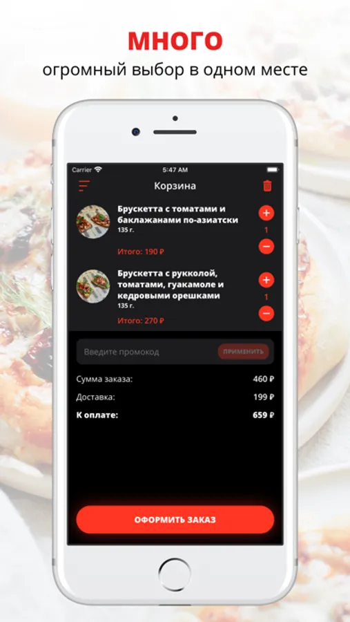 Скачивайте наше приложение, оформляйте заказ и наслаждайтесь любимой едой, где бы Вы ни были! Приятного аппетита!
