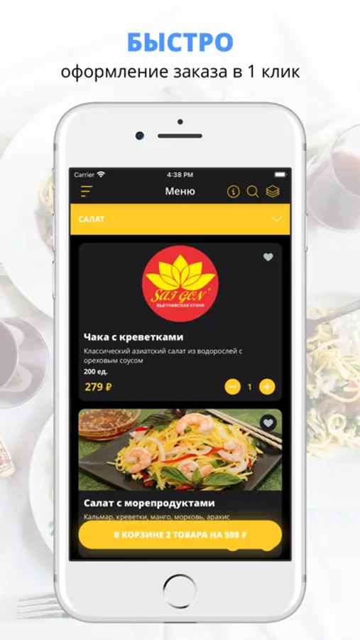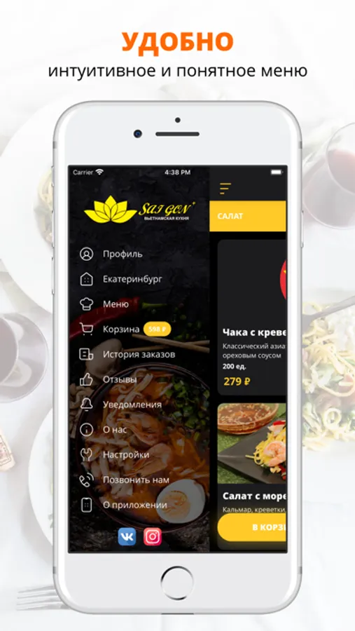 Удобное приложение для заказа еды из Кафе Вьетнамской Кухни SAI GON.
