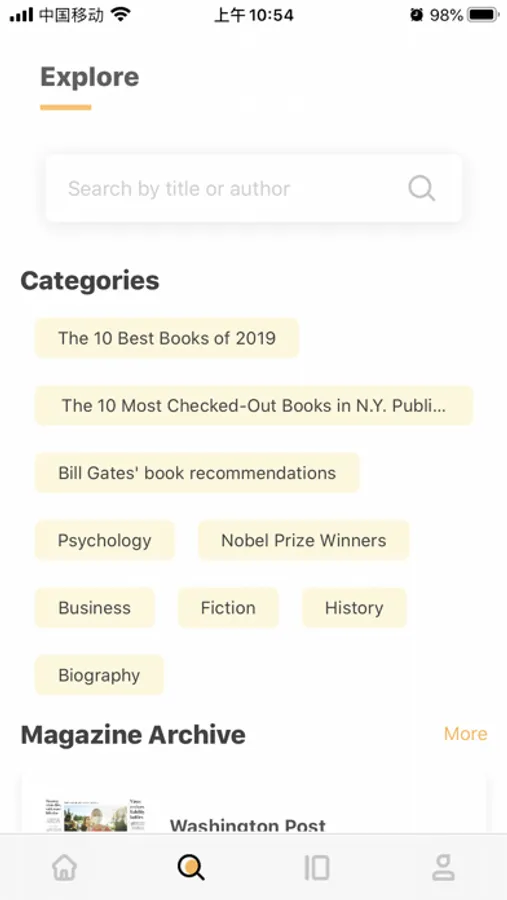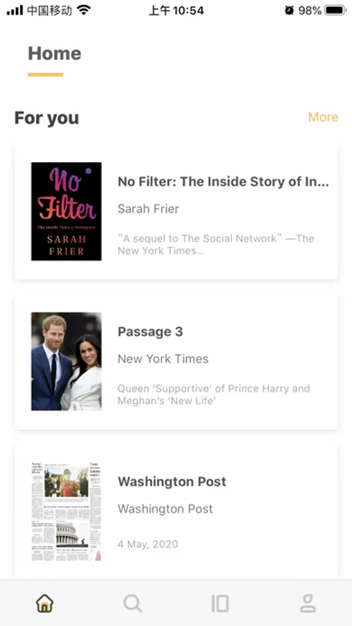 首页:每日更新当日外刊内容。 显示阅读过的书籍和杂志