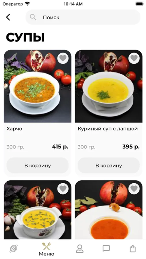 - Добавлять любимые блюда в избранное.