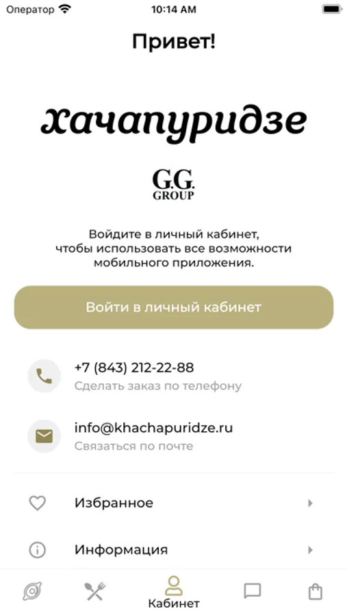Кафе Хачапуридзе входит в холдинг GG-GROUP. Включает в себя небольшой зал для посетителей до 35-40 персон. Выбор блюд из Грузинской кухни на Ваш вкус. Выпечка и холодные закуски, шашлык, хинкали и напитки.