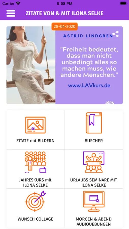 Durch diese App erhältst du täglich Bilderzitate von & mit Ilona Selke auf dein Handy,