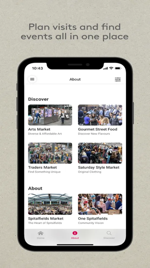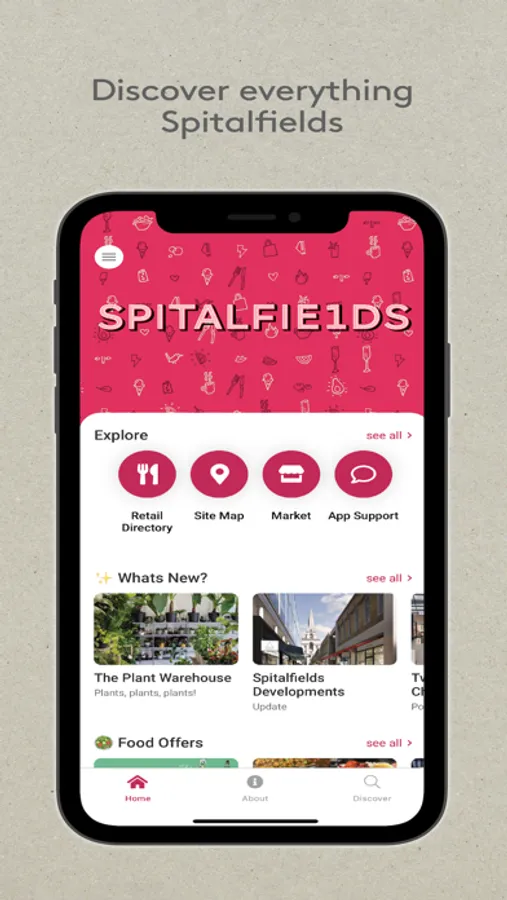 Whether you're a local resident, work on site or are visiting from far and wide, the Spitalfields app is the essential way to discover everything that London's most historic market has to offer. Once registered, gain access exclusive to food & drinks discounts, retail offerings, live travel information and first look at our exciting events roster! Enjoy Spitalfields at your fingertips with this essential new addition to your phone.