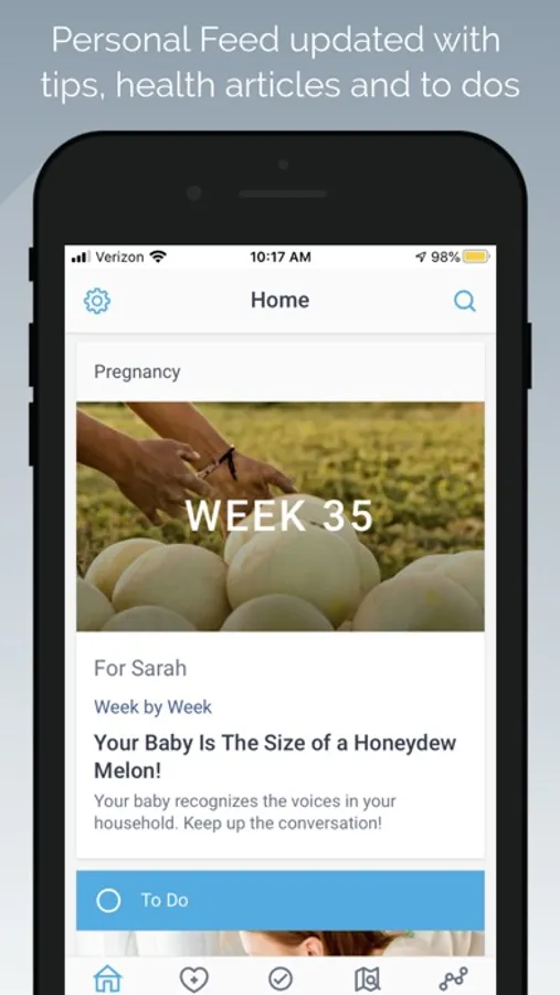 With thousands of health articles, this is the app to turn to for trusted health advice. Based on your profile, your due date and any family members in your app – you get personal content just for your health journey. From the Feed you’ll get health tips, important To Dos and access to Learn Library articles.
