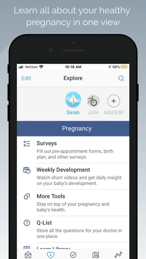 Supporting your family at every age and stage, and connecting you with the right resources at every step of your journey. In-app tools help you to navigate the unique growth of your family.