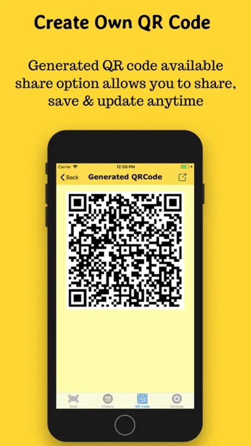 - For any generated QR code, there is available a share option which allows you to share anywhere
