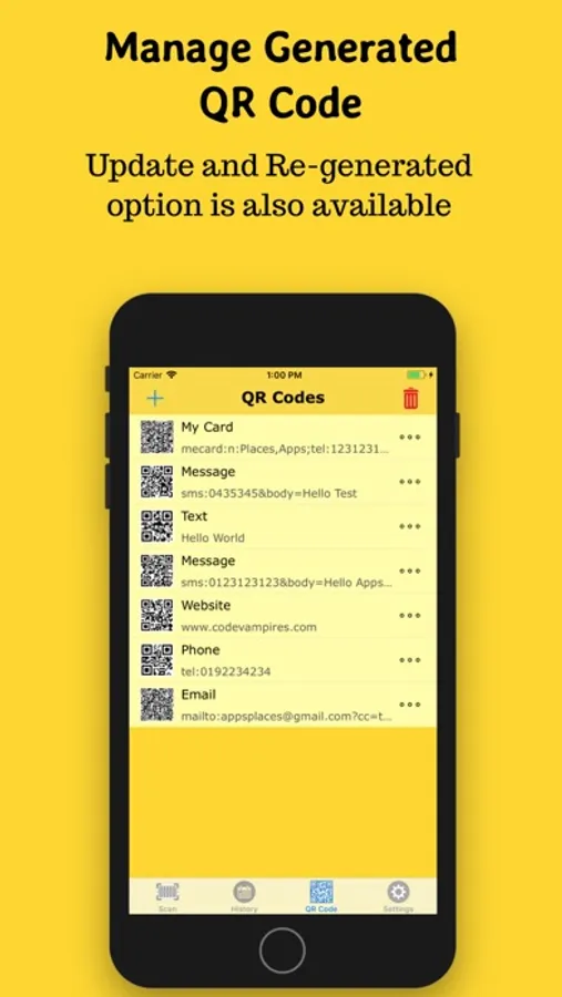 - For any generated QR code, you can update anytime and updated QR code is saved in your storage