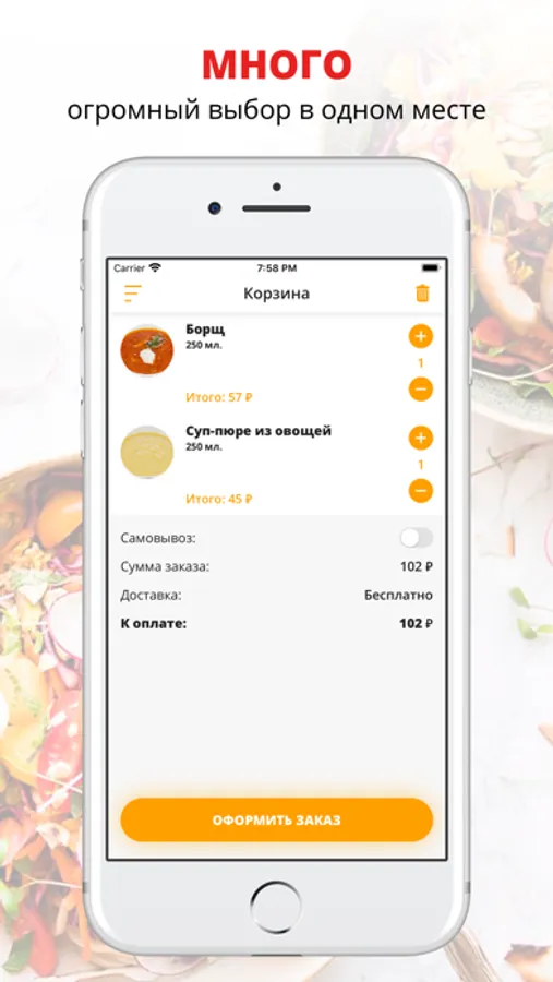 Оформите самовывоз прямо в приложении, чтобы получить скидку 10% на весь чек, а затем приходите по адресу: Киров, ул. Московская, 133