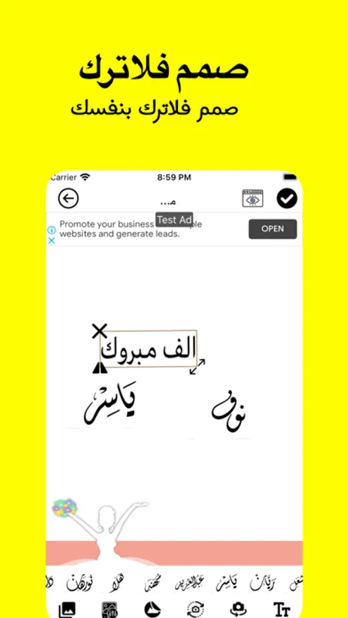 - ادراج نص كتابي داخل التطبيق وتحكم في حجم الخط ونوع الخط مع مجموعة من خطوط مميزة