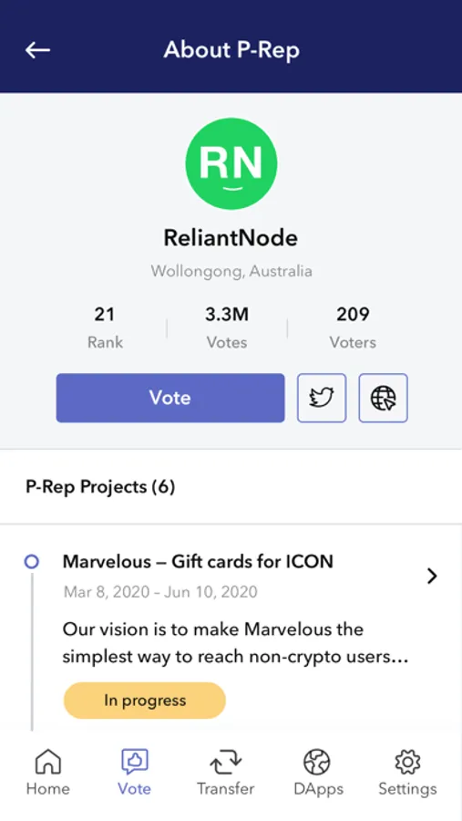 When participating in governance on ICON you’ll want to know what P-Reps are working on so that you can decide who to vote for. MyIconWallet keeps you updated with information on P-Rep projects and how they’re progressing.