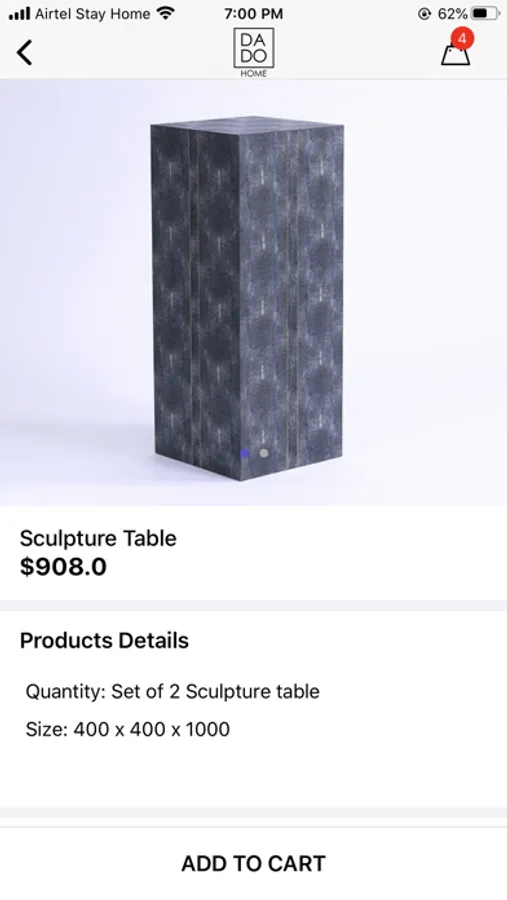 DADO HOME is an online shopping app and delivering decor solutions for the home at large. You will be able to see and buy quality collection of products from furniture, homedecor, luxury items, accessories and more.