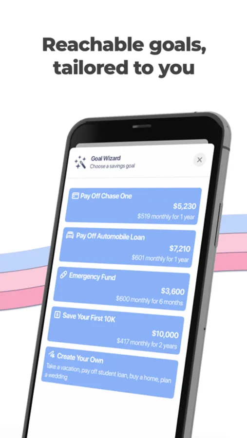 Link your financial institutions and get goal recommendations suited to your needs. Whether for an emergency fund, paying off a credit card, or saving up for something special, the Goal Wizard will recommend just the right amount.
