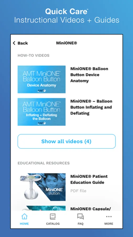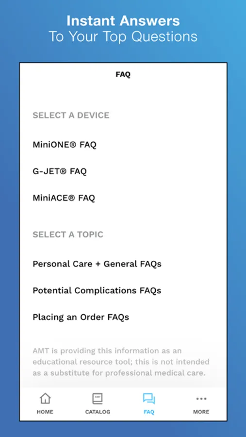 - Quick Care™: Easily explore and learn about AMT’s devices with FAQs and How-To Videos.