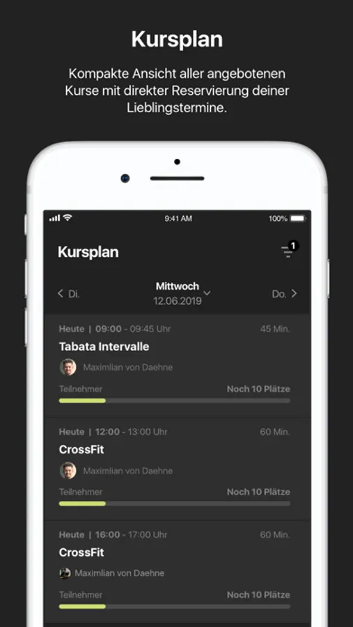 Kein Anrufen, kein persönliches Vorbeikommen – wer heute im Fitnessstudio einen Termin für einen Kurs mit begrenzter Teilnehmerzahl oder Personal Training buchen möchte, macht das ganz bequem per App. Einfach eine Leistung auswählen, einen Termin festlegen und schon steht deinem Training nichts mehr im Wege. Sollte dir etwas dazwischenkommen, kannst du den Termin selbstverständlich auch wieder absagen – ein Knopfdruck genügt.