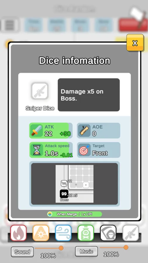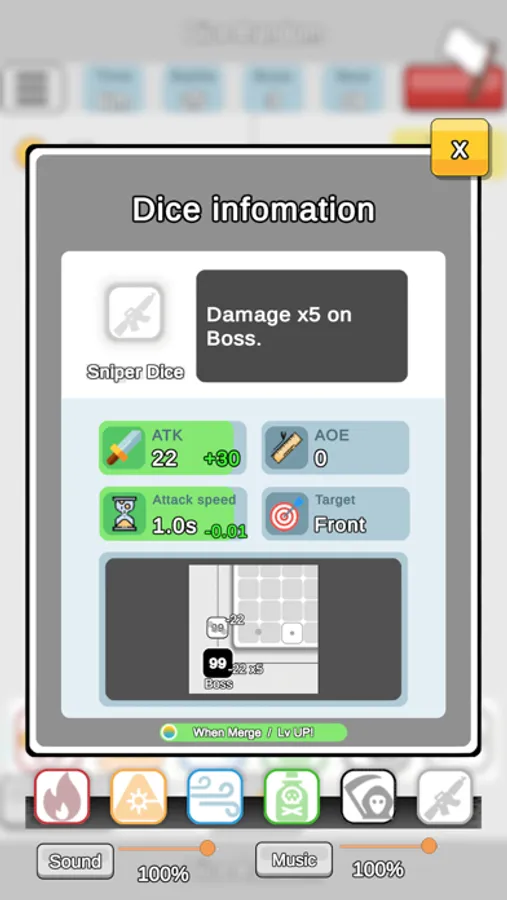 There are dices with special ability such as Explosion, Laser, and Slow.