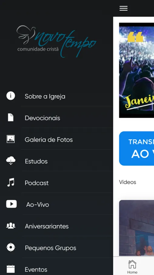 Aplicativo Oficial da Comunidade Cristão Novo Tempo conta com as seguintes funcionalidades: