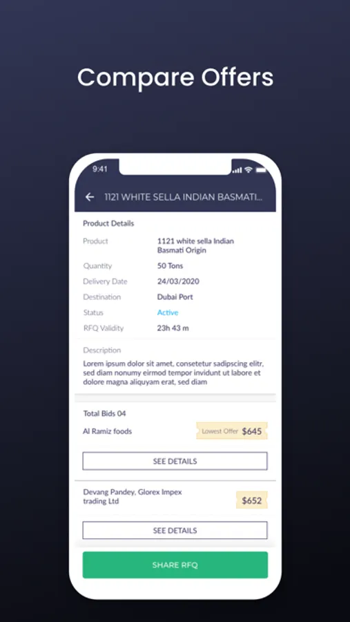 Negotiate and get better prices from your suppliers. Easily create and share requirements with your trading partners to get offers instantly. Compare offers from multiple partners, send counter proposals and finalize deals through the app.