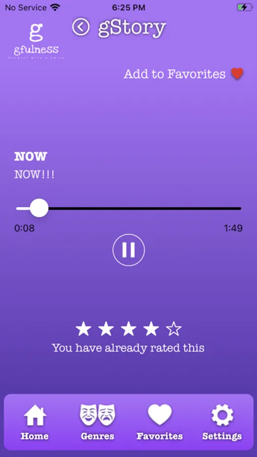 Gfulness is a mindfulness, meditation and stress relief app that utilizes humor, smiling & laughter to bring the listener to a happier and more mindful state of being. The Gfulness app contains a generous library of humorous and relaxing audio pieces that range from 30 seconds to 12 minutes with new pieces added every week. There are a variety of genres to choose from like Daily Inspirations, Meditations, Stories, Poetry, News, ASMR and much more. All of our content has been written and performed by a talented and hilarious team of professional actor/writer/comedian/voice over artists who are based in Chicago, Los Angeles & Vermont.
