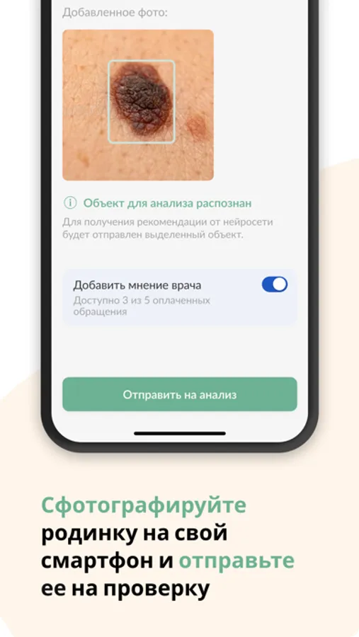 Отправляет сформированное обращение для анализа родинки на основании полученных данных.