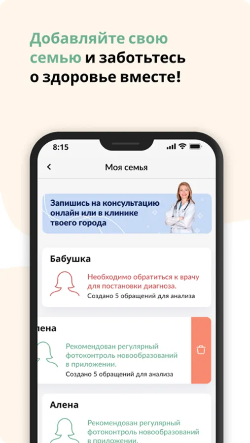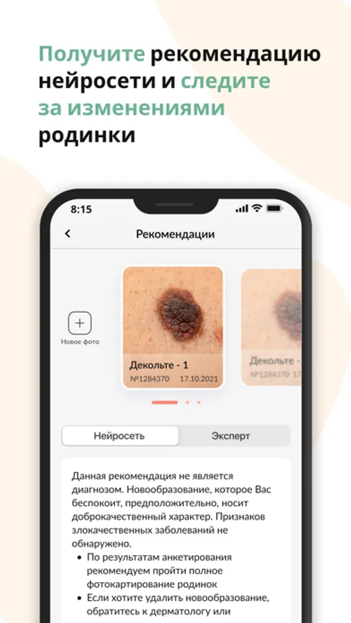 Вы не должны откладывать обращение за медицинской помощью, прекратить лечение или игнорировать медицинскую консультацию из-за информации, содержащейся в приложении "Про родинки".