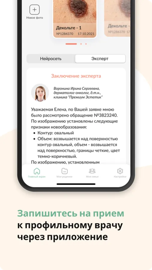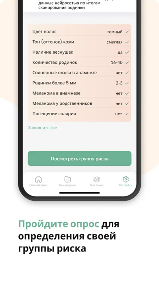Приложение "Про родинки" не должно использоваться в диагностических или лечебных целях, и не заменяет визит к врачу. Проконсультируйтесь с врачом в дополнение к использованию приложения до принятия медицинского решения.