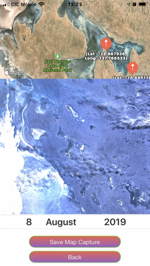 You can search a location on the Apple map and when tap touch your screen then you retrieve the location with Latitude and Longitude and an image is display of Landsat 8.